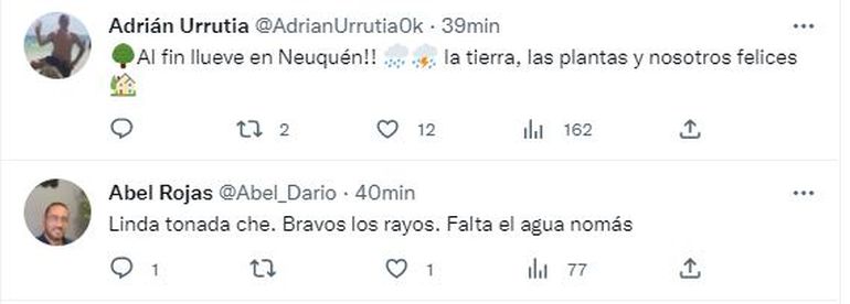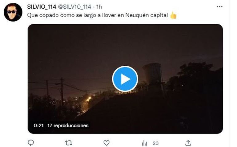 En tanto, los rayos iluminaban todo como si fuera de día. La lluvia había comenzado desde el este de la ciudad, ya que del lado rionegrino a las 21 ya caia una cortina de agua en Cipolletti. No obstante, había algunos sectores donde apenas habían caído un par de gotas.