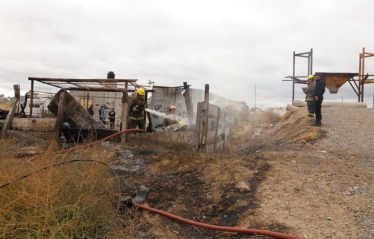 Este jueves por la mañana un incendio devastó la vivienda de una familia compuesta por una pareja y sus dos hijos, quienes ofician de serenos de la Cooperativa 127 Hectáreas, ya que resguardan un par de camiones y material de construcción que están guardados en el predio donde estaba la casa que se prendió fuego.
