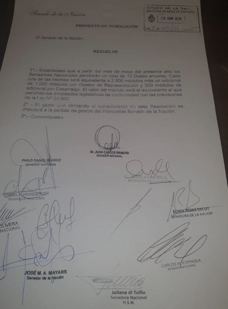 Además de las firmas de Juan Carlos Romero y la neuquina Lucila Crexell, el proyecto recibió el respaldo de Pablo Blanco, entre otros legisladores, y contó con el aval de la vicepresidenta Victoria Villarruel.