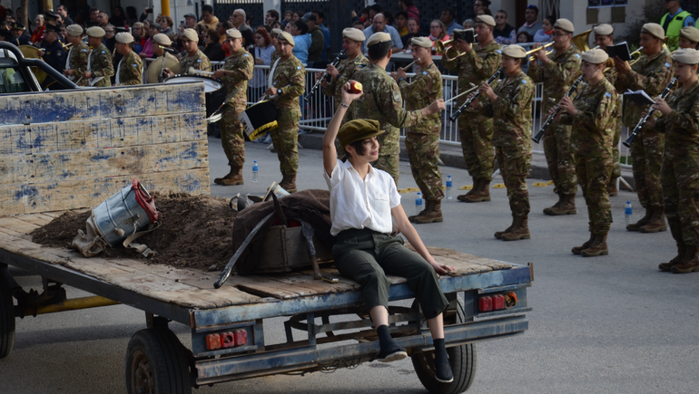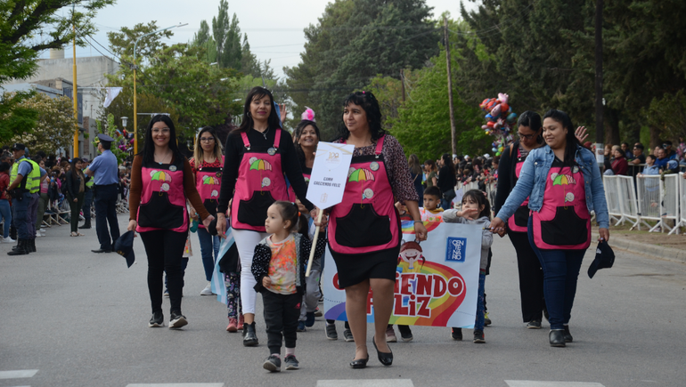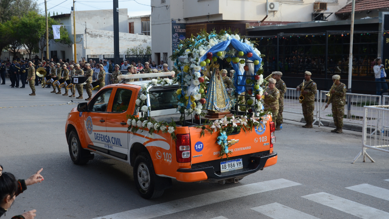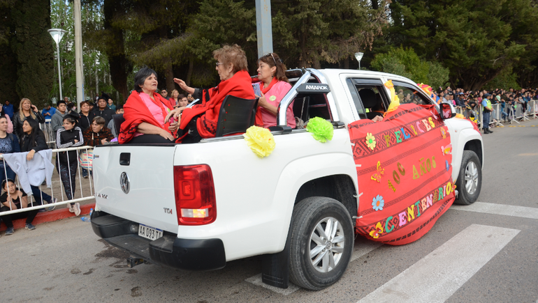 El viento, una vez más, fue protagonista de la jornada, y la fiesta comenzó con el desfile una banda militar y todas las agrupaciones representativas de la ciudad que le pusieron color a un día histórico para la ciudad.