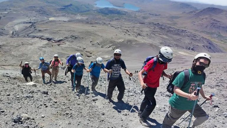 El ascenso estuvo guiado por la española Esther Medina y el argentino Flavio Duprett, responsables de Geoturismo Caviahue, quienes acompañaron a los turistas durante toda la jornada. En ese contexto, Ezequiel se destacó desde el inicio; afrontó cada tramo sin excusas y logró superar incluso el exigente arenal montañoso, uno de los sectores más complejos del recorrido.
