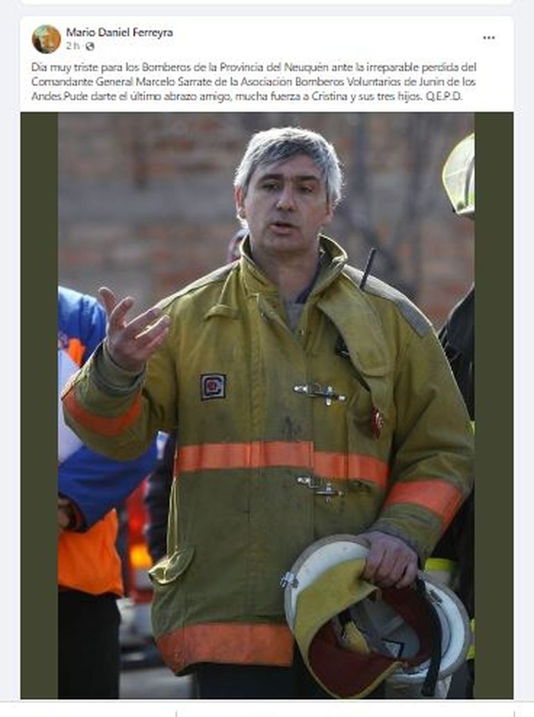 "Fuerzas a la familia. El descansa en paz después de tanto sufrimiento. Nunca dejó de pelearla. Acompañamos en estos momentos de gran dolor a sus familiares y camaradas", expresaron desde la Asociación de Bomberos Voluntarios de Villa Pehuenia y Moquehue.