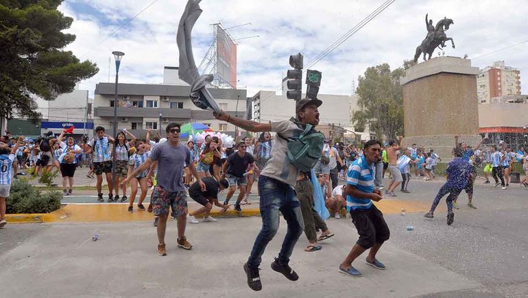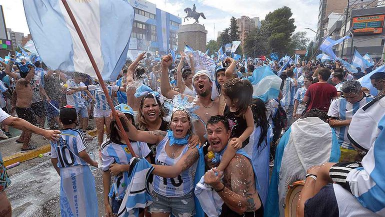 Mientras que algunos miraron el partido en la pantalla gigante sobre la municipalidad, otros en bares y la mayoría reunidos en sus casas con familiares y amigos, siempre respetando las cábalas mundialeras, apenas la pelota del último penal tocó la red, los neuquinos salieron masivamente a las calles a celebrar. El lugar de referencia, como es costumbre es el Monumento a San Martín.