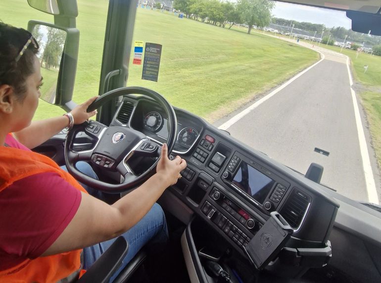 Cuando llegó la hora tan esperada de poner en práctica lo aprendido y finalmente conducir, Florencia se sintió invadida por una mezcla de nervios y ansiedad, como suele pasar la primera vez que uno enfrenta algo nuevo: desde aprender a andar en bicicleta, manejar un auto o en este caso, un camión.