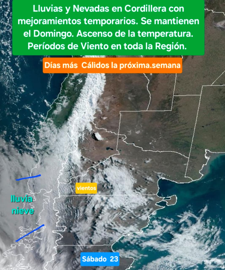 La Autoridad Interjurisdiccional de las Cuencas (AIC) también adelantó que el tiempo estará ventoso y que en la zona se pasará del frío a una jornada templada, con mejoramientos temporarios. "Paulatino ascenso de la temperatura con mejoramiento generales de las condiciones a partir del martes", pronosticaron desde el organismo de la región.