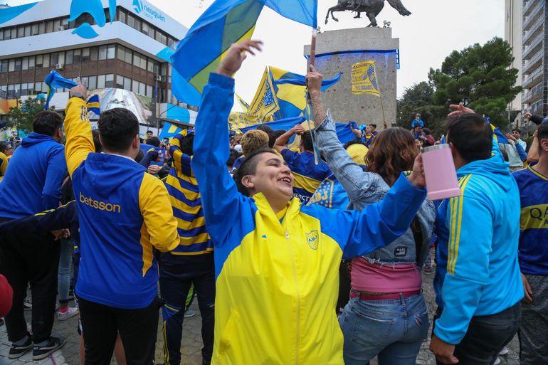 Cientos de bosteros se dieron cita en la explanada del monumento a San Martín, en Neuquén capital y celebraron la clasificación del equipo que conduce Diego Martínez. Mirá las mejores fotos de los festejos.