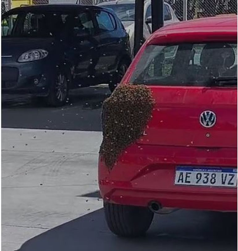 Estas abejas, como las que aparecieron en este auto rojo, se iban a quedar un máximo de 24 horas, mientras viajan de un lugar a otro. También quizás llegaron provenientes de las bardas, ya que en ese sector de la ciudad hay muchas colmenas, contó el apicultor.