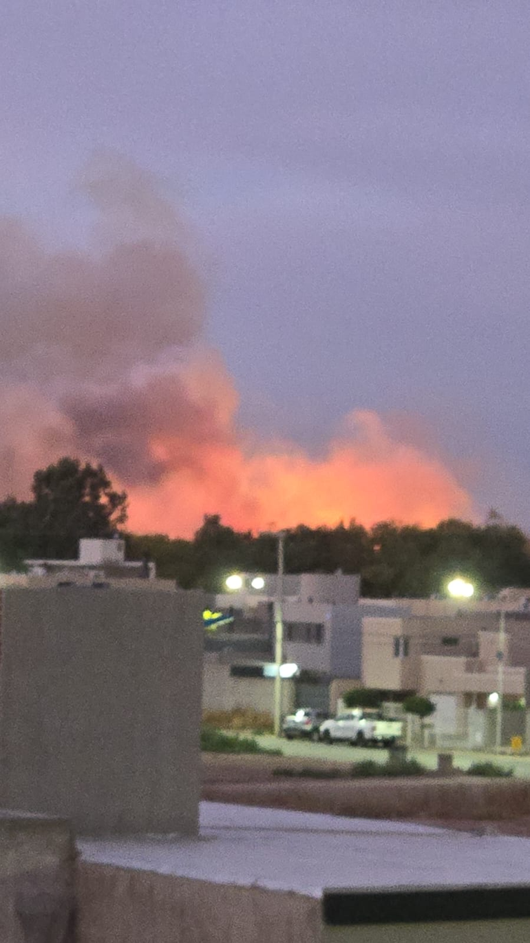 Protección Civil de Cipolletti acudió al lugar tras ser alertados desde Neuquén por el incendio de grandes dimensiones que se había desatado en la tarde de este sábado.