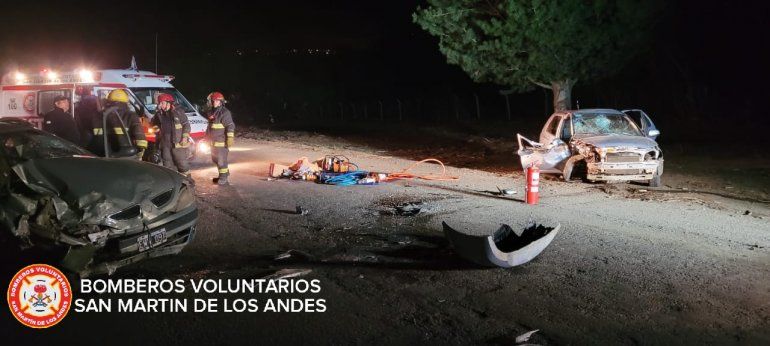 Los Bomberos Voluntarios de San Martín de los Andes tuvieron que intervenir también en un accidente de tránsito sobre la ruta 48 en la localidad cordillerana. Dos vehículos impactaron de frente en la noche del viernes.
