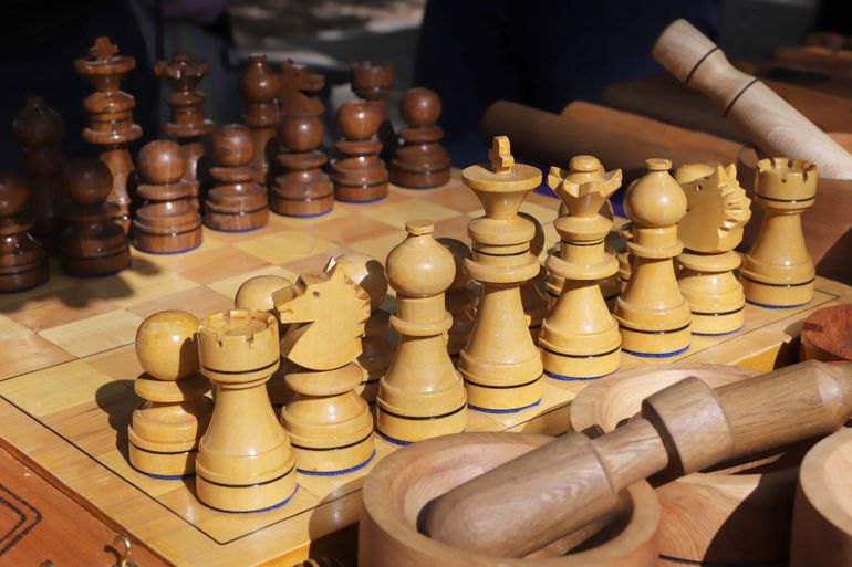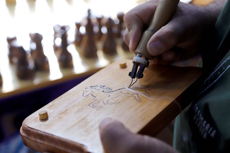 Entre todas las piezas que exponen Ricardo y Ana, hay una que se roba todas las miradas: el tablero de ajedrez, una verdadera obra de arte que combina precisión, paciencia y belleza. “Es lo que cuesta vender. En estos últimos cuatro años vendimos cinco unidades, y este es el sexto”, contó Ricardo.
