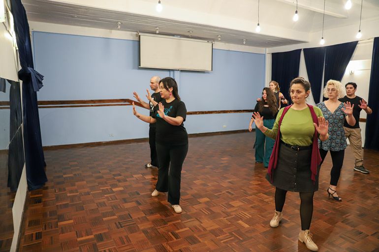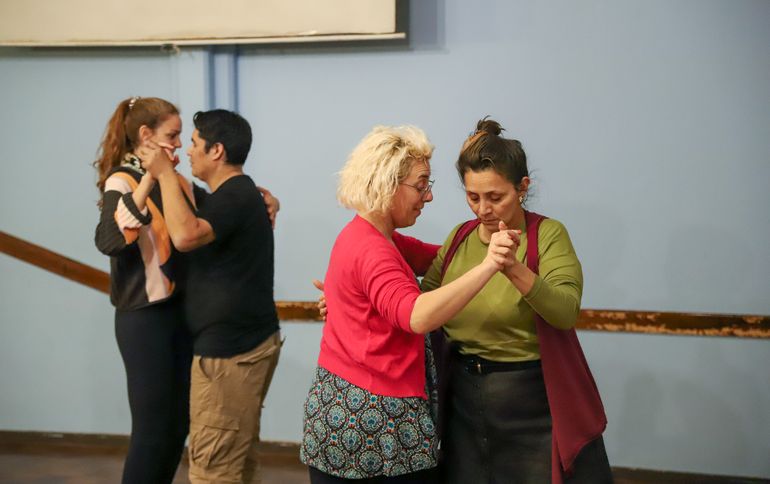“Estén atentos a quienes tienen al lado, porque es un espacio pequeño pero tenemos que entrar todos”, dice Julián. Es sábado de tango y ya suena la orquesta de Osvaldo Pugliese en el pequeño salón de la Casa Popular Arturo Jauretche ubicada el centro oeste neuquino. Hay un puñado de personas esperando la clase: una pareja con experiencia; una señora que empezó a bailar hace unos años en Zapala; una adolescente que vino acompañada por un amigo y su papá para aprender desde cero; unos cuantos entusiastas parados sobre una buena base; una periodista que quiere descubrir por qué su abuela amaba tanto el tango y así. Mientras, unas niñas juegan debajo de la mesa que está en la esquina del salón y un gato entra y sale reclamando comida.