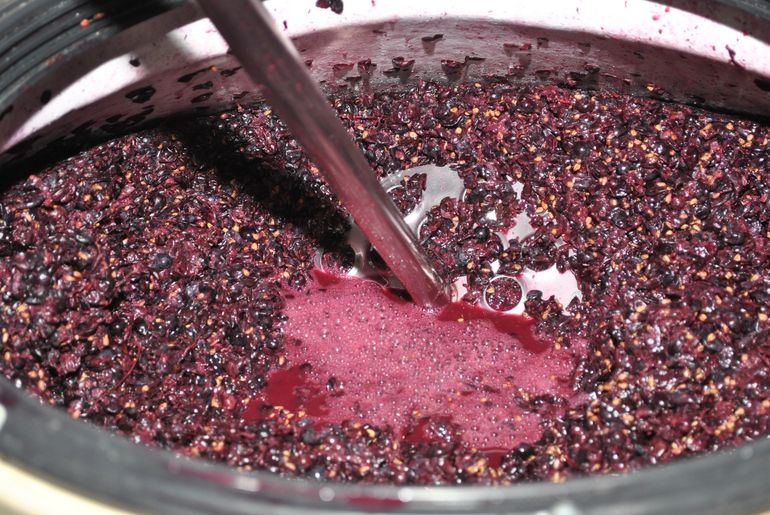 “La uva luego de la molienda se pone en los tambores y se siembra la levadura y se comienza con el proceso de fermentación alcohólica. De manera manual “se baja el sombrero” y se revuelve el contenido. Después se mide que no queden restos de azúcar y se pasa a la prensa donde se separa el jugo del orujo”, relató Liberatori.