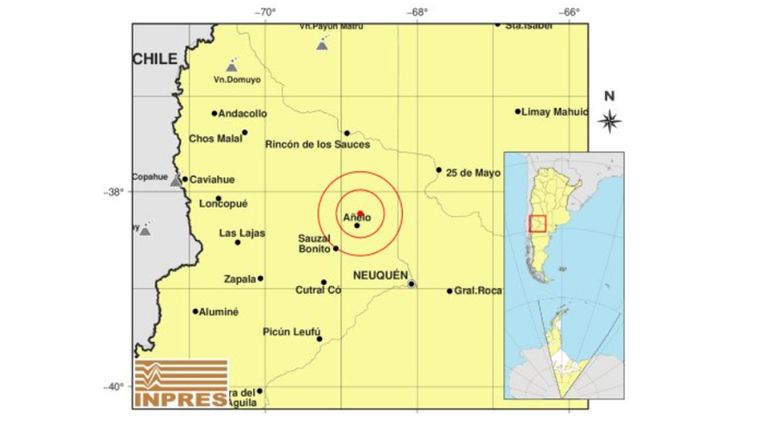 De acuerdo al registro del organismo nacional, el evento tuvo una magnitud 2,8 ml (Richter) y una profundidad de 14 km. El epicentro fue a 91 km al Noroeste de Neuquén (-38.228 (lat) -68.749 (long)).