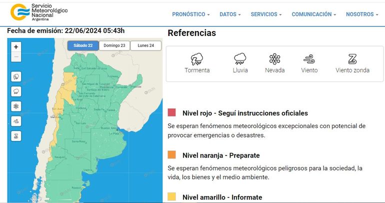 Se trata de una alerta amarilla que alcanza a la zona cordillerana de las provincias de San Juan, Mendoza y Neuquén; el sureste de Chubut y el centro y este de Santa Cruz.