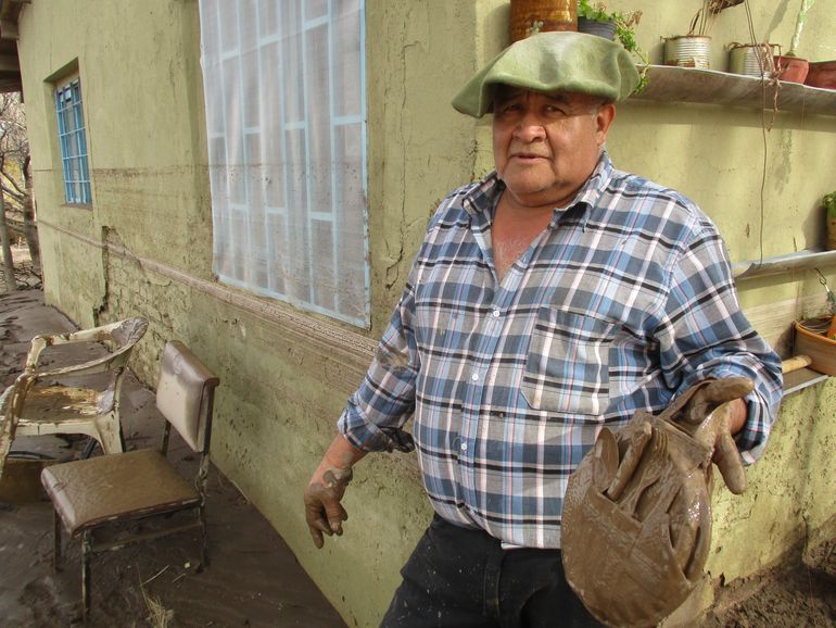 El hombre de 63 años, que llegó al paraje de Vaca Muerta en 1971, perdió casi todas sus pertenencias con la inundación que devastó el jardín y la entrada de su casa, además de trepar unos 1,80 metros puertas adentro.