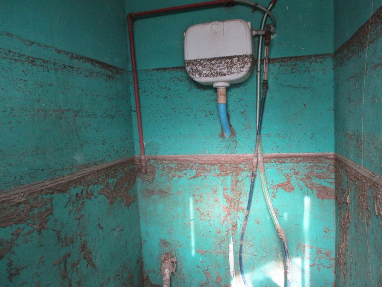 Un pequeño baño externo también evidencia el desastre y de los niveles del agua, durante los picos más altos de la crecida.