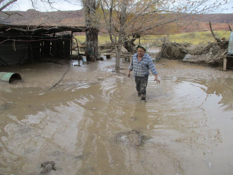 Juan Sánchez, el agente sanitario que se convirtió en el guardián de las reliquias de Paso de los Indios, sufre las consecuencia de la crecida extraordinaria del rio Neuquén, a causa de las fuertes lluvias que tuvieron lugar el último fin de semana de junio.