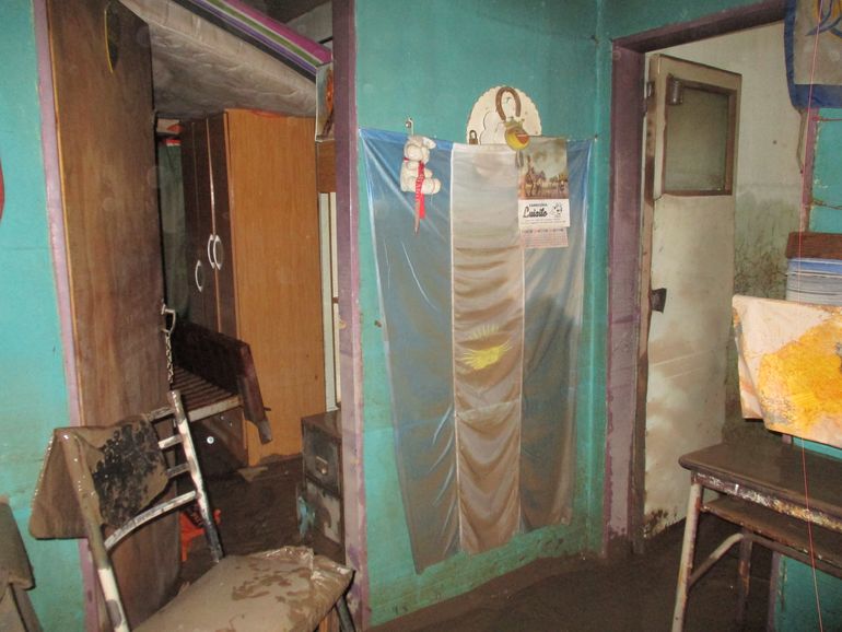 En el interior de su vivienda el panorama es caótico y desolador. Todos sus recuerdos y pertenencias quedaron inservibles, revueltos y cubiertos por el lodo.