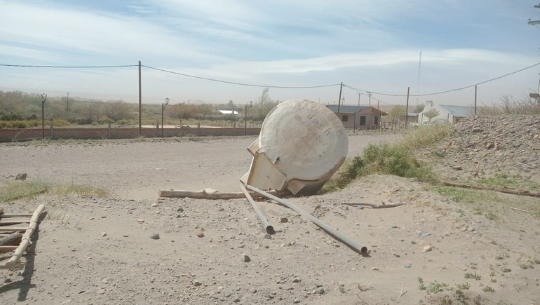 La caída del tanque produjo la rotura de algunas maderas de la estructura del edificio policial. El tanque de color blanco con una capacidad de 20 mil litros es habitualmente utilizado para repartir agua dentro de la comunidad. Se encontraba en una planicie y el fuerte viento le hizo perder su estabilidad y su ubicación original.