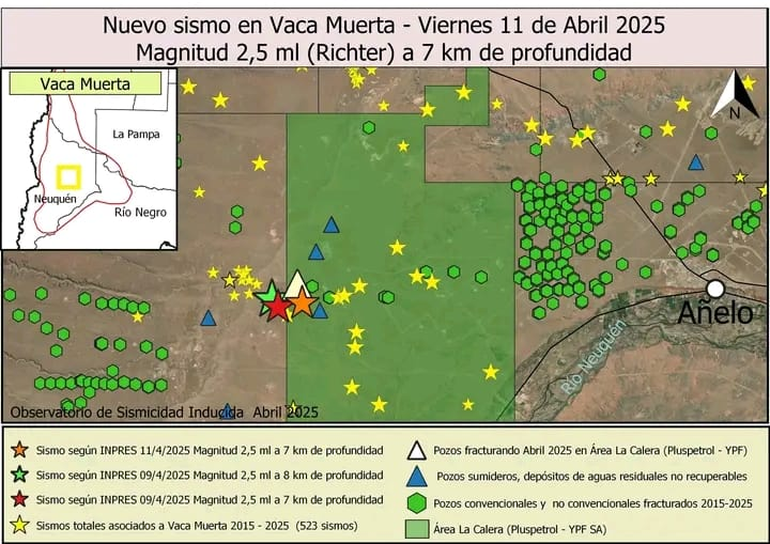 En la misma línea, afirmaron que "la relación entre la fractura de los pozos en Vaca Muerta y la inyección del agua de flowback que devuelven esos mismos pozos explica por qué estos fenómenos se vuelven cada vez más numerosos y afectan a zonas dónde antes no lo hacían".