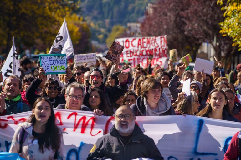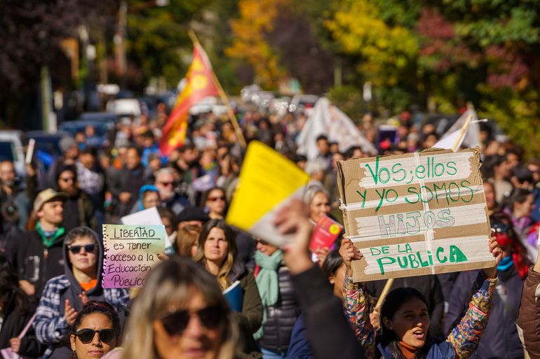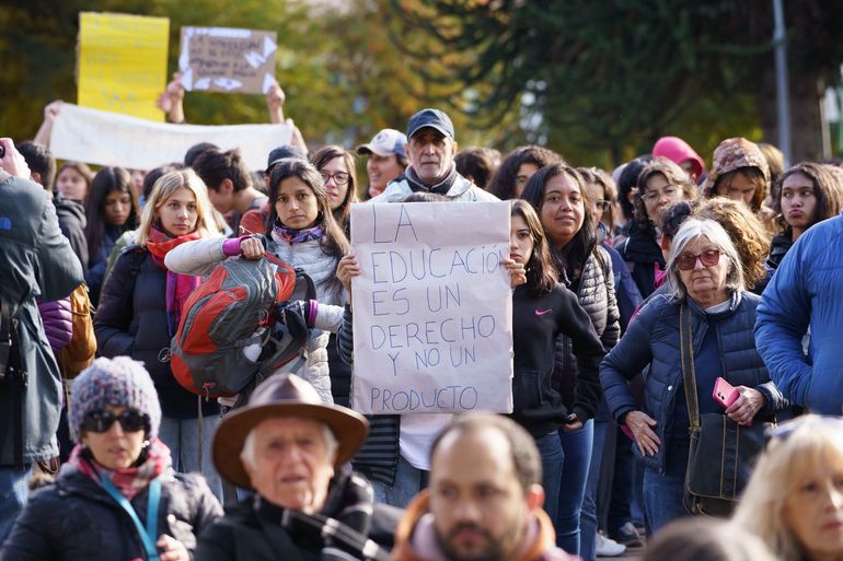 Más de 30 mil personas convocó la marcha universitaria en la capital neuquina. Luego de recorrer la ciudad de norte a sur, estudiantes, docentes, autoridades y comunidad en general confluyeron en el monumento al General San Martín.