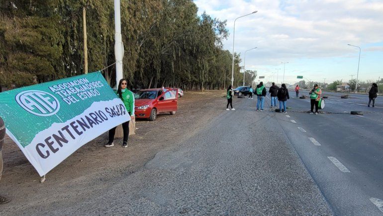 Trabajadores del hospital Natalio Burd de Centenario nucleados en ATE cortaron la Ruta 7, a la altura del picadero, para presionar por la reincorporación de dos auxiliares de enfermería eventuales que fueron despedidos hace más de un mes.