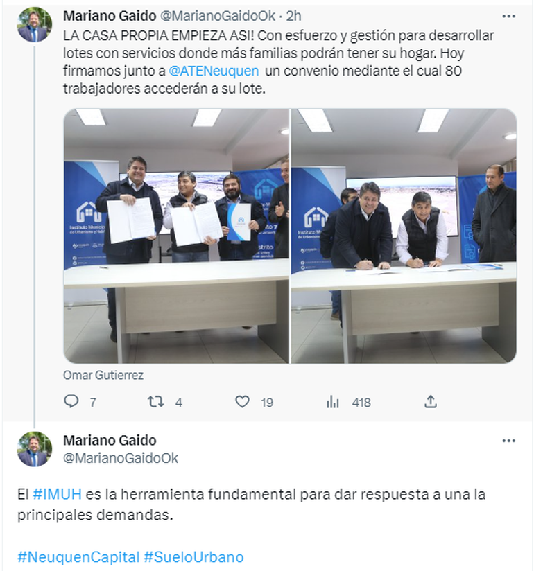 “Ya entregamos dos barrios en la ciudad de Neuquén y próximamente, a partir de noviembre o diciembre comenzaremos con la entrega de lotes del próximo barrio”, agregó.