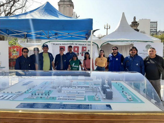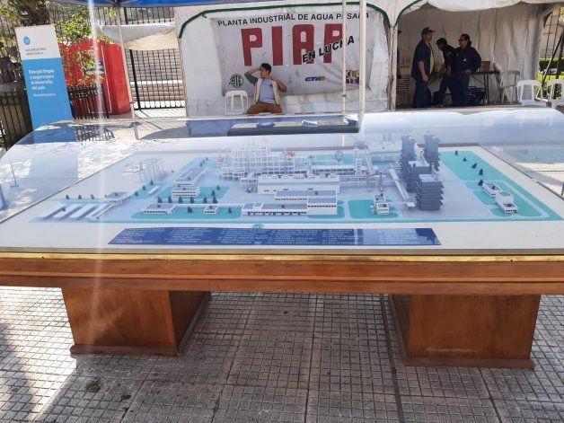Los trabajadores llevaron hasta el Congreso de la Nación una maqueta donde se muestra toda la Planta Industrial de Agua Pesada ubicada en Arroyito.
