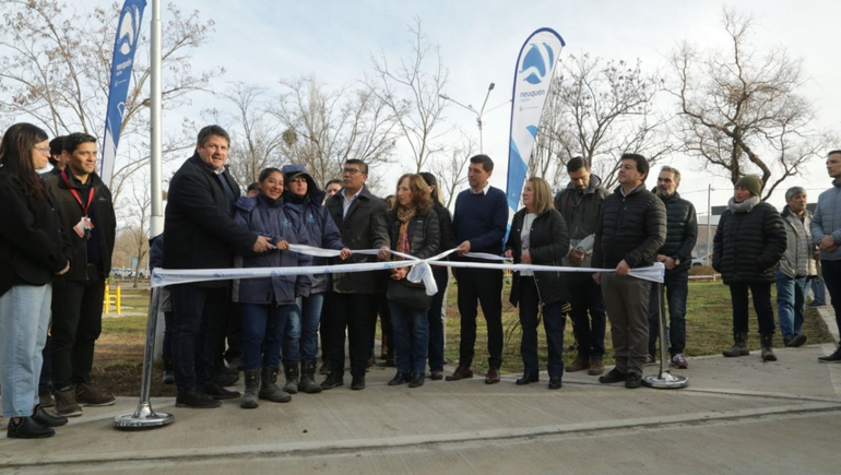 Ubicada en la calle12 de septiembre 4930, en el oeste de la capital neuquina, en un sector contiguo a las vías del tren, el corte de cintas y el descubrimiento de la placa de este espacio público se llevó adelante esta mañana con la presencia del intendente Mariano Gaido y del vicegobernador Marcos Koopmann. En representación de la firma Halliburton estuvo David Argüello y de las y los vecinos el presidente de la comisión barrial, Luis Sánchez.