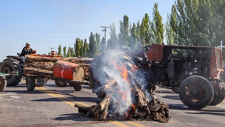 La escena quedó grabada por un periodista local. Los productores cortan el Tercer Puente desde esta mañana.
