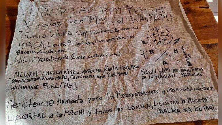 El mensaje en folleto hallado combina la escritura en castellano con mapuche y concluye: “Resistencia armada para la reconstrucción y liberación nacional. Libertad a la machi y a todas las lamien. Libertad o muerte”.
