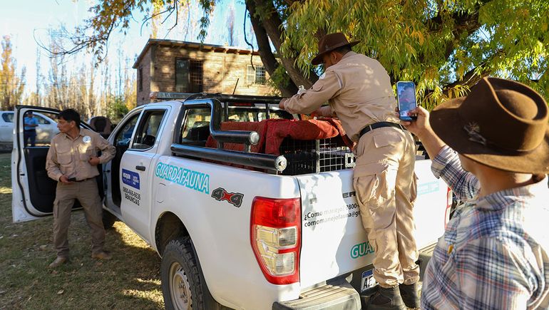 El despliegue incluyó la participación de Guardafaunas provinciales, personal de la Comisaría Séptima de Plottier, trabajadores de Zoonosis Municipal, Defensa Civil y la cooperativa de energía eléctrica de Plottier, que jugó un rol clave al facilitar una grúa para alcanzar al animal.