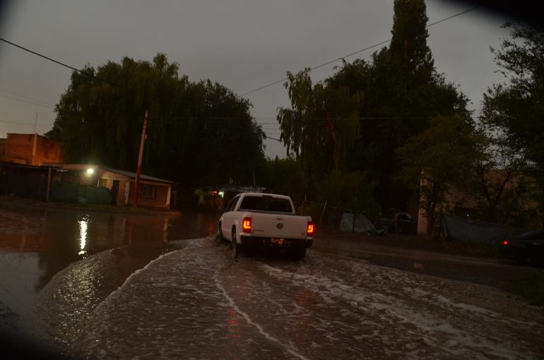 Con 17 mm de agua caídos en Roca, las calles Tucumán, 9 de Julio, Jujuy, Mendoza y José Ingenieros fueron algunos de los puntos más afectados por el agua acumulada y el barro, lo que dificultó la circulación vehicular y peatonal.