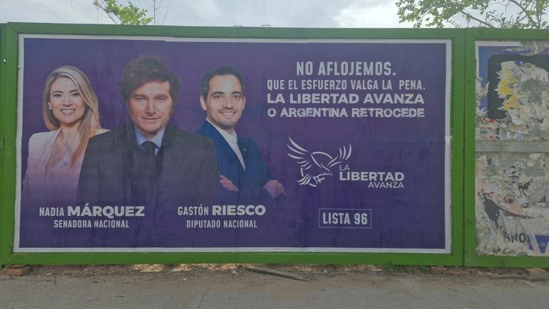 En la boleta de la Libertad Avanza, Nadia Márquez es la candidata, pero la marca electoral se llama Milei. Las leyendas “Nadia es Milei” y el protagonismo marcado del apellido presidencial muestran la estrategia: no se vota tanto por conocer a Márquez, sino por reafirmar el rumbo nacional bajo la amenaza de no volver al pasado.