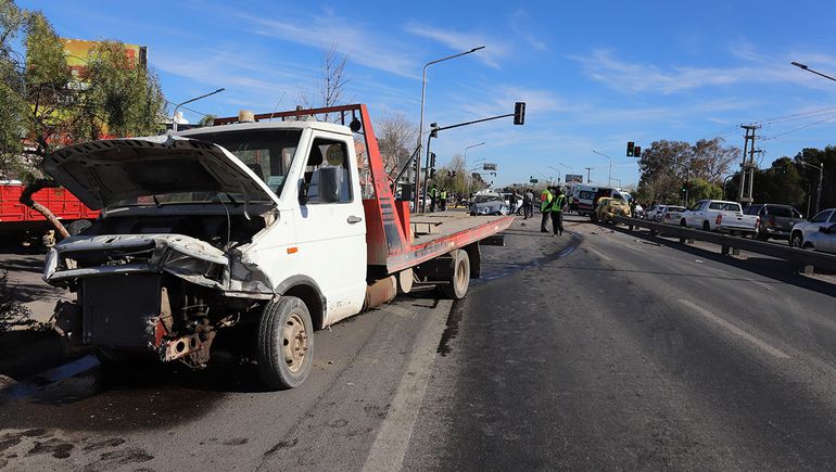 Un impactante choque paralizó el tránsito en hora pico sobre la Avenida Mosconi (ex Ruta 22), este viernes al mediodía. En medio del caos que generó, entre vehículos que iban en dirección a Neuquén y otros a Cipolletti, personal policial llevó a cabo todas las diligencias de rigor para establecer la mecánica de la triple colisión que involucró a dos autos y una grúa de auxilio mecánico, tipo furgón Iveco.