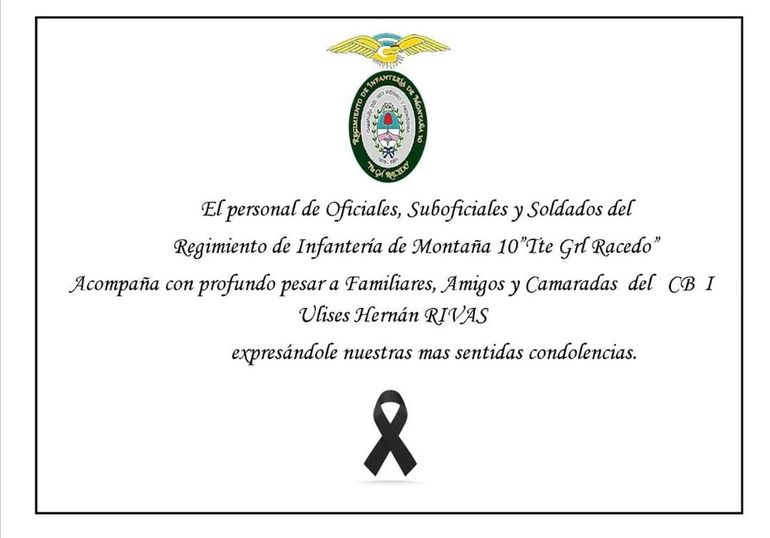 La muerte del cabo Ulises Hernán Rivas, de 27 años, ha generado un profundo impacto en el Regimiento de Infantería de Montaña (RIM) 10 y en el Ejército Argentino.