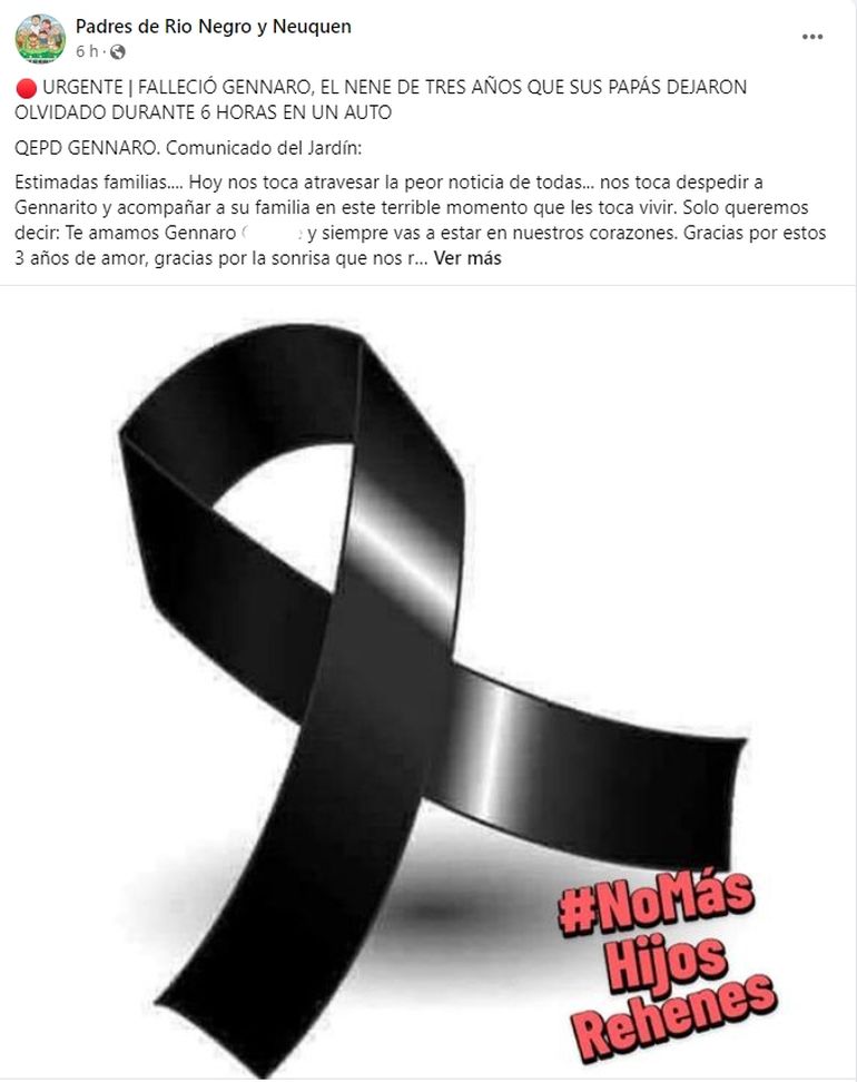 Cuando se apagó la luz y su entorno más cercano confirmaba que su estado era irreversible, el equipo de seños del jardín que lo vio crecer publicó en sus estados un desgarrador posteo que abraza a Gennaro, de apenas tres años, y abraza a su familia.