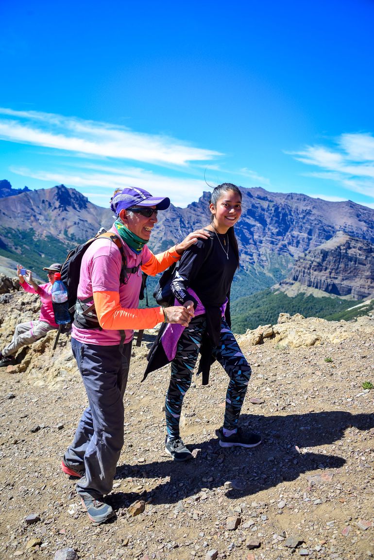 “Yo atravesé esto y estoy viva”, es una de las tantas frases que se suele escuchar de boca de algunas de las cientos de personas, entre hombres, mujeres y niños, que hacen cumbre en el cerro Teta, que integra el Cordón Chapelco y forma parte del centro de esquí.
