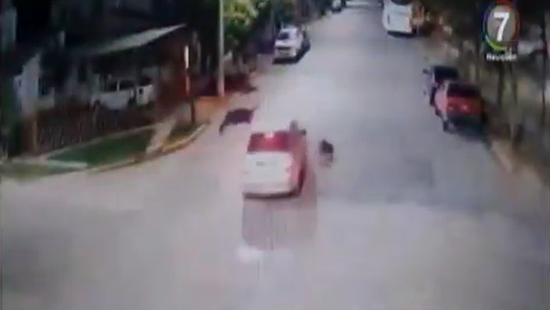 “Iba camino al trabajo y me topé con esta persona, la saqué barata porque tuve fracturas en el pie izquierdo pero, como se ve en el video, pudo haber sido peor. Gracias a Dios el casco no se me salió y no sé de qué manera caía que no me fracturé los brazos“, dijo la mujer en una entrevista con Canal 7.