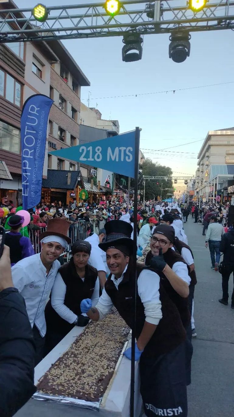 El tradicional evento de Bariloche tuvo este año la participación de Edgardo Presas quien aportó su delicado producto para llegar a los 218 metros de chocolate.