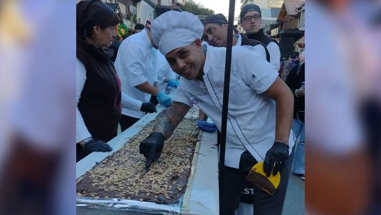 El chocolatero de Cutral Co, Edgardo Presas, participó este fin de semana largo de la tradicional Fiesta del Chocolate que se realizó en Bariloche, y sumó su exquisito chocolate neuquino para que entre todos llegaran a fabricar una barra de 218 metros de largo, que compartieron entre los visitantes.
