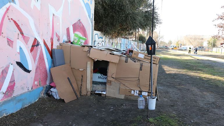 Resulta que las personas que no tienen dónde dormir, por decisión propia o porque no les queda otra, se adueñaron de un pequeño espacio que existe entre lo que fue el centro cultural La Conrado, actualmente abandonado, y el Jardín N°1, más conocido como "Conejito". Algo así como un hueco, donde defecan y orinan.