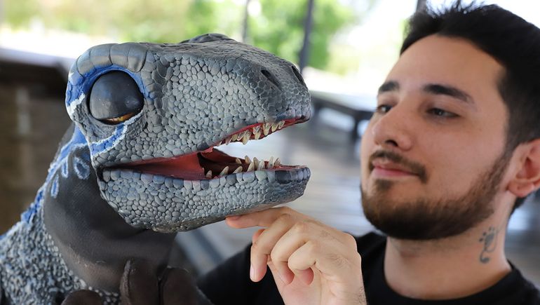 Martín Inostroza tiene 26 años y tras atravesar problemas de salud mental creó a Beta, un velociraptor que recorre ferias y eventos con un mensaje de superación.