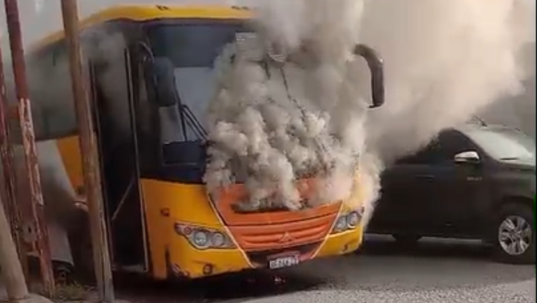 Esta mañana, cerca de las 9 se registró el incendio de un colectivo de la línea 50 B de Plottier que circulaba con una gran cantidad de pasajeros a bordo. En poco tiempo, las llamas cada vez más altas consumieron el vehículo blanco y amarillo, que terminó con pérdidas totales.