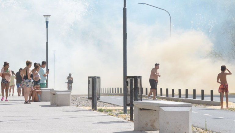 Desde que llegó el personal a la zona del incendio, la Policía se encargó de cortar la calle de la costanera para evitar que más personas ingresen al sector donde estaba el fuego y evitar así que haya inconvenientes con personas.