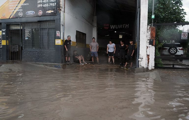 La fuerte tormenta que se desencadenó en Neuquén, entre abundante lluvia y muy ruidosa por los rayos, convirtió a muchas de las calles de la capital en grandes piletas. Algunos automovilistas quedaron atrapados por la inundación, mientras que los comerciantes de la zona Centro y del Bajo sacaron agua a baldazos para no perder sus mercaderías.