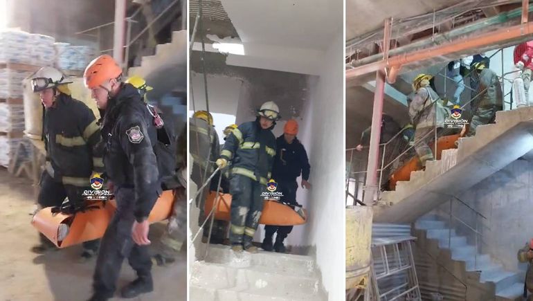 Por tal motivo, primero tuvo que ser estabilizado en el lugar y luego se resolvió su traslado en lo que se conoce como una tabla anatómica Sked. Se trata de una camilla que inmoviliza al paciente en caso de emergencia y permite su rescate en lugares de difícil acceso. En el caso, la herramienta facilitó el descenso del joven trabajador, desde el piso 12 hasta la planta baja de la obra, a través de la escalera.