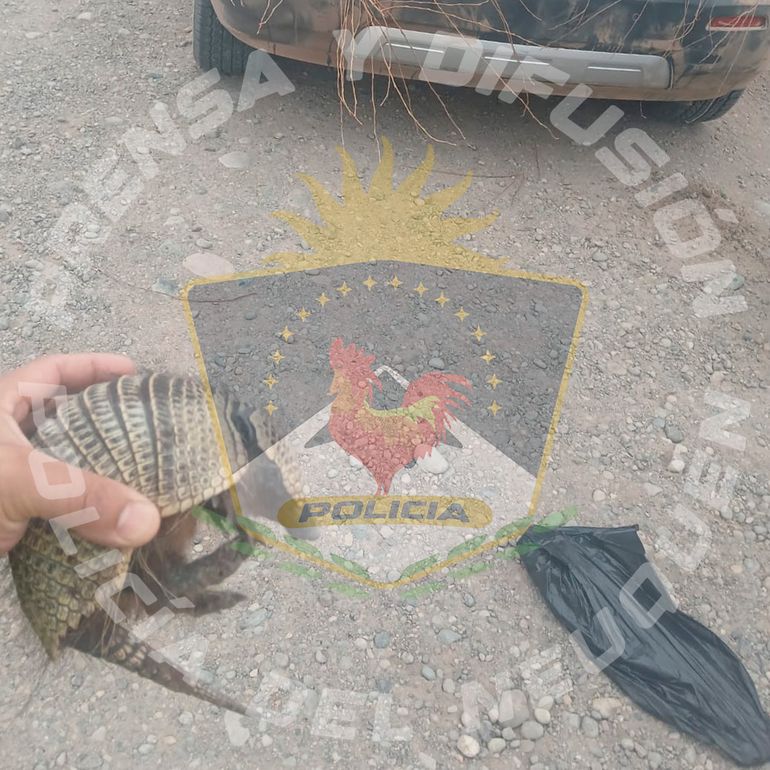 Este sábado personal de Guardafaunas dio con una camioneta que transportaba un piche con vida. En otro vehículo, se encontraron truchas.