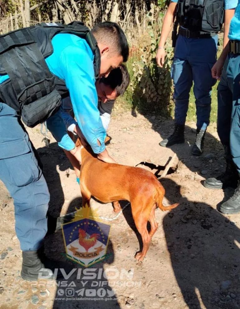 Al verlo, estaba desesperado por salir, aunque no evidenciaba otros problemas de salud. Había caído a la cámara séptica de una calle de tierra, donde la tapa del pozo se encontraba desprendida. Los efectivos policiales que concurrieron al lugar se hicieron de unas cuerdas para retirarlo con mucho cuidado. Con las cuerdas lo ataron y, a modo de palanca, lograron retirar al perro sin lastimarlo.
