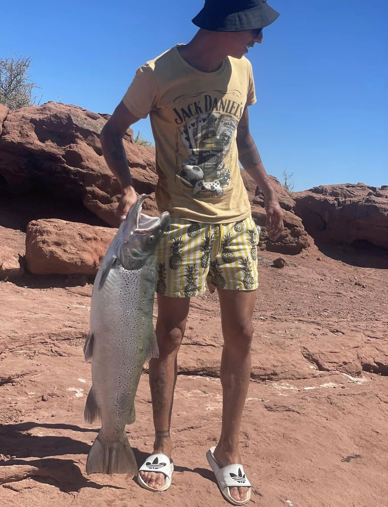 Se trata de una familia que realiza esta práctica desde hace mucho tiempo y recorren los distintos espejos de agua de la provincia para poder "mosquear", pero contaron que en ningún otro lado han encontrado peces como los que se ven en el lago Mari Menuco en el último tiempo. "Ese mismo día una chica que estaba pescando cerca de nosotros logró sacar otra trucha así de grande", recordó.